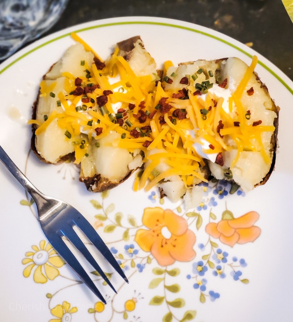 Our family loves baked potatoes so I made up this recipe to mimic those we get at a restaurants; it turned out delicious!