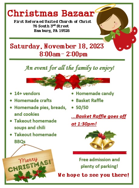 Join us on November 18th at First Reformed Church of Christ for their annual Christmas Bazaar! We’re so excited to be apart of this wonderful event for another year & we look forward to seeing everyone!